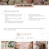 - Phông cưới: Sử dụng chất liệu fomex cán PP tạo hình 3D nhiều layer, đầy đủ đèn chiếu sáng, kích thước tiêu chuẩn (3,5x3,5m)